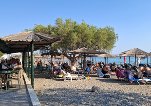 Strand waar vooral de Grieken zelf gebruik van maken. Gelegen aan een weg waar meer dan voldoende horeca aanwezig is.